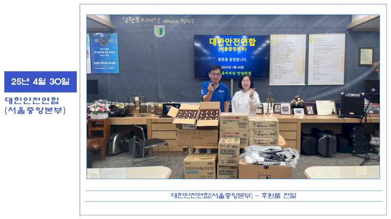 2025년 4월 30일 대한안전연합(서울중앙본부) 후원 방문