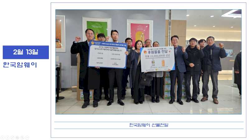 2025년 2월 13일 한국암웨이 선물전달 페이지 정보 작성자 운영자 댓글 0건 조회 741회 작성일 25-03-13 14:22 본문 한국암웨이에서 영양제와 바디로션 후원해주셨습니다. 목록 이전글2025년 2월 18일 한국암웨이 요리수업(밤티라미슈) 25.03.13 다음글2025년 2월 12일 스키캠프 1차(웰리힐리파크 스노우파크) 25.03.13 댓글목록 댓글목록 등록된 댓글이 없습니다.