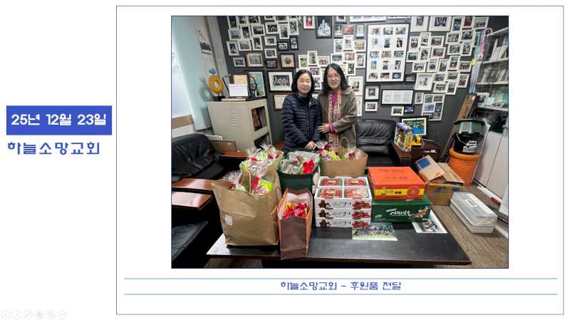 25년 12월 23일 하늘소망교회 후원품 전달